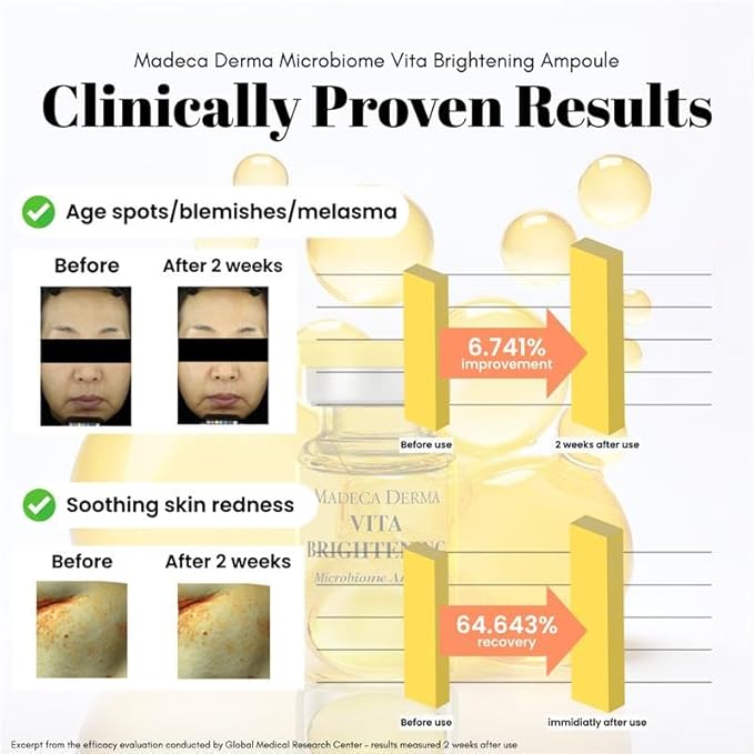 MADECA DERMA Vita Brightening Microbiome Ampoule – Brightening with Vitamins C & E, Hyaluronic Acid & Antioxidants, Korean Skincare for Radiant, Even Tone & Dark Spot Care (0.23 fl oz x 5 Bottles)