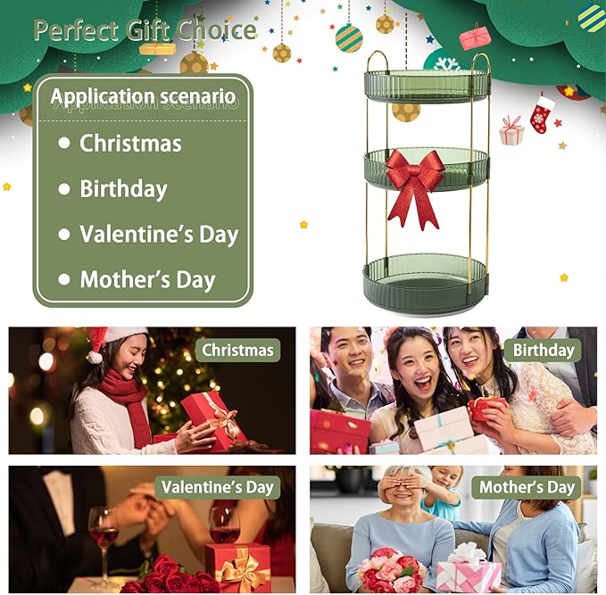 - Large Capacity: This organizer 2 tier measures 9''D x 9''W x 12.5''H, 3 tier measures 9''D x 9''W x 18.5''H (please measure your countertop space before purchasing). Great for organizing skincare, makeup, perfume or anything you like, save space and increase storage capacity