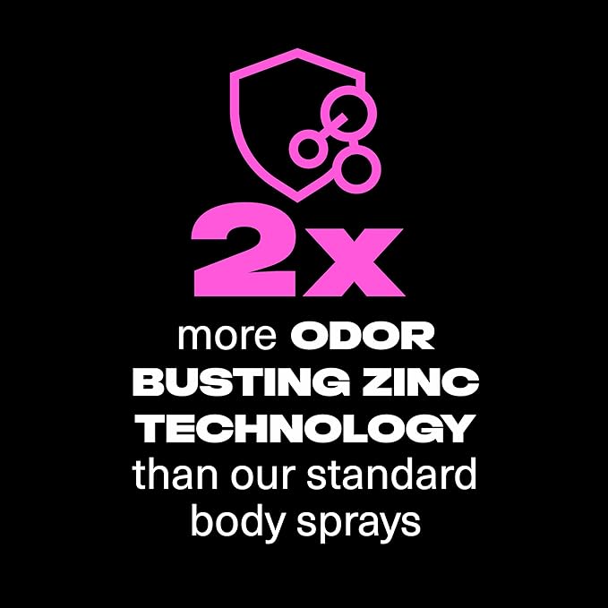 - How do we keep you smelling fresh for 72 hours? Thanks to 2X more of our odor-busting Zinc technology than the standard body sprays. And that’s not all! No harsh ingredients. A refreshing Aluminum-free formula made with essential oils.