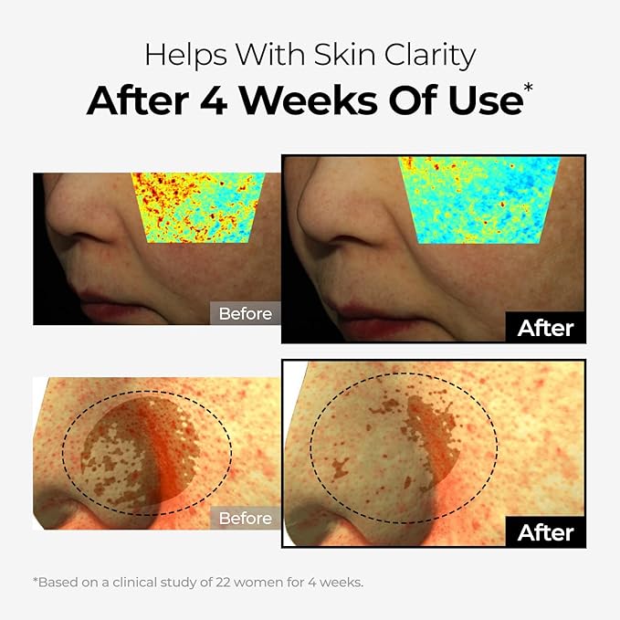 - Visible Results in 2 to 4 Weeks - Clinically tested for supporting skin clarity, density, and moisture barrier with continuous use; noticeable improvement from week 2.