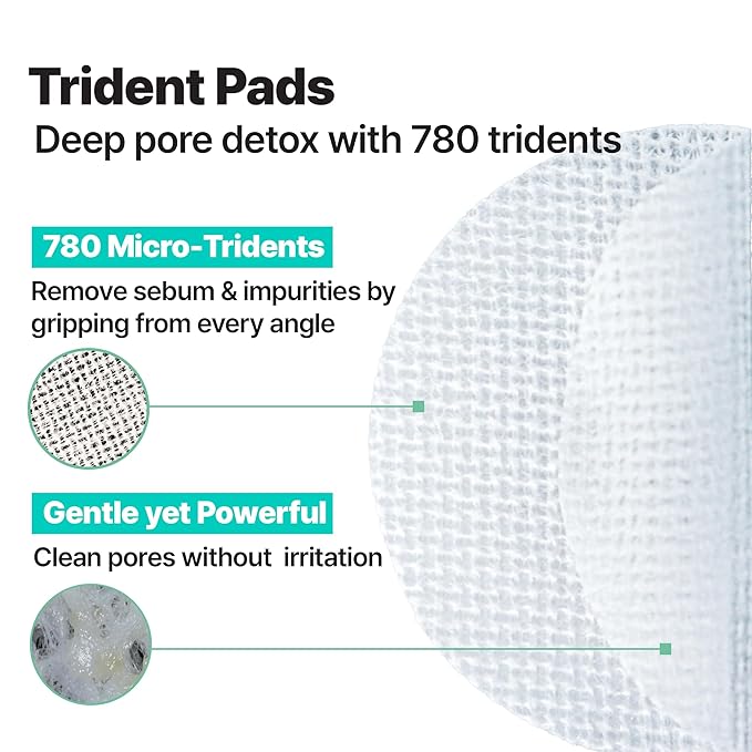 - Obliterate sebum and blackheads with trident-shaped pads: The 780 fine trident-shaped bumps on each pad effectively eliminates blackheads, sebum, and waste found in pores. Pads have plaid-like design to best mimic the texture of skin to provide a non-irritating, soothing deep cleanse.