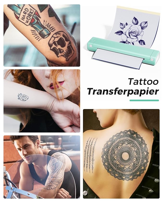 - Powerful Phomemo App - Say goodbye to complicated printing processes - our Phomemo App allows for one-click printing of images and documents. Unlike traditional tattoo printer machine that require printing on white paper before copying, you can print your designs instantly with our app. Plus, for optimal printing results, we recommend using Phomemo Tattoo Transfer Paper