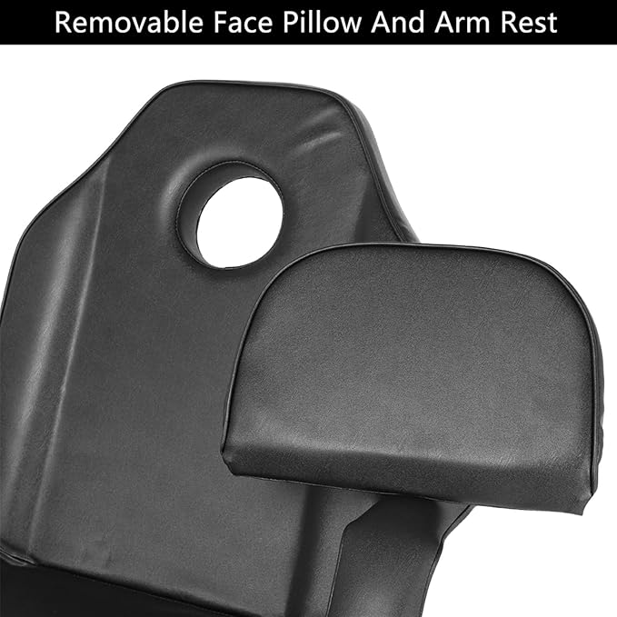 - 【Humanized Adjustable】Our tattoo bed has a backrest and footrest, the headrest and footrest are easily adjusted to a comfortable angle according to the needs of the clients. The spa bed backrest adjusts from 65° to 180° and the footrest adjusts from 0° to 70°. The removable headrest opens to a facial cradle for clients to breathe comfortably while laying face-down, and the armrests can easily be removed for more space to move, come with a long hook, you can place towels on it.
