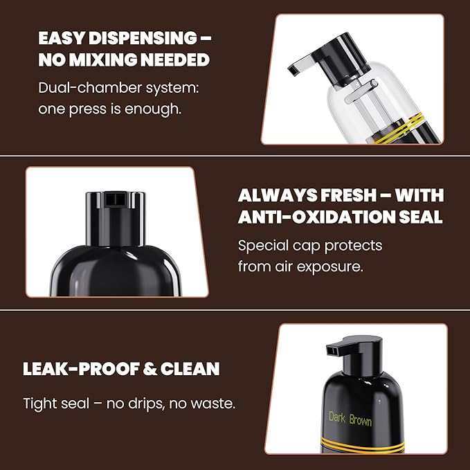 - 3 IN 1 DARK BROWN HAIR DYE: Different from traditional hair dye, our hair dye shampoo is parabens free, no harsh chemicals.