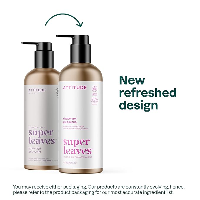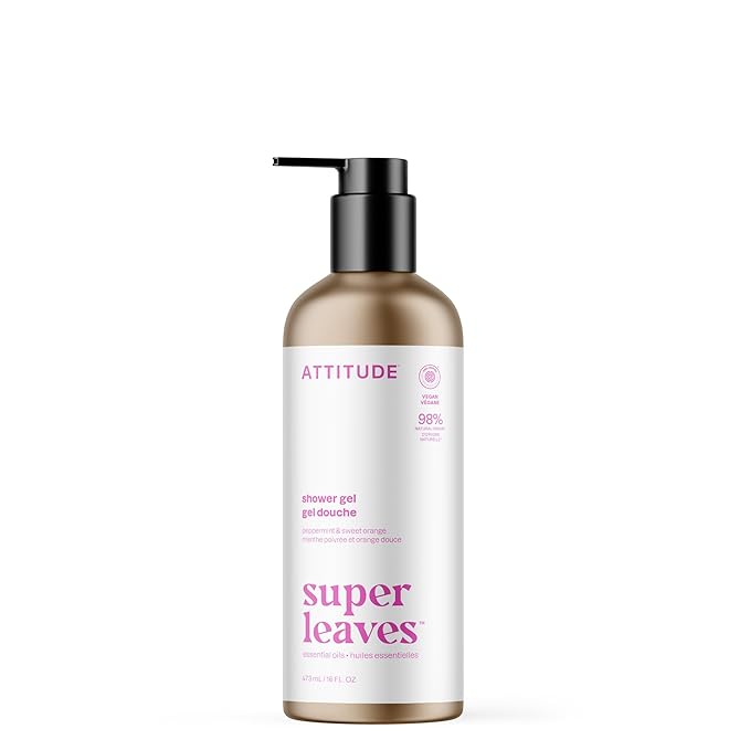 ATTITUDE Body Wash with Essential Oils, EWG Verified Shower Gel, Dermatologically Tested, Plant and Mineral-Based, Vegan Personal Care, Refillable Bottle, Peppermint and Sweet Orange, 16 Fl Oz