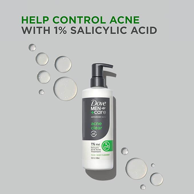 - TRIPLE ACTION MOISTURIZER: Dove Men+Care Advanced Care Acne Clear Face + Body Cleanser is enriched with a triple action moisturizer that repairs, nourishes, and hydrates acne prone skin