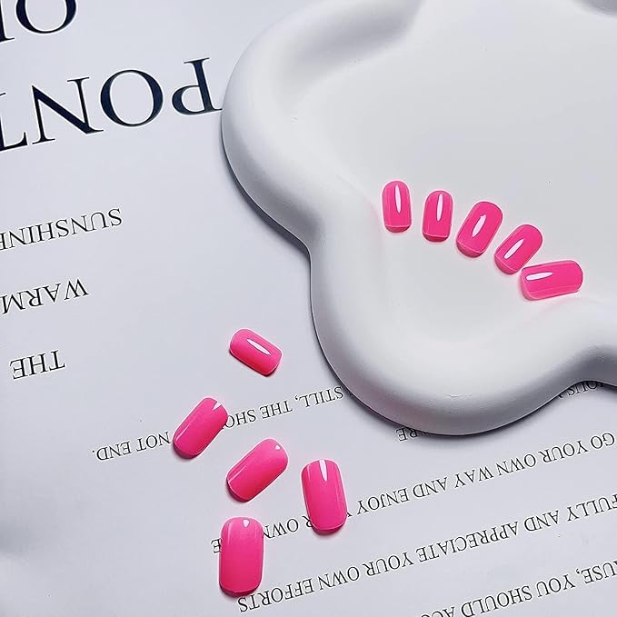 - Lasting Effect Hot Pink Nails Press ons:Unique formula ensures this hot pink glue on nails short square long last and water-proof.If you prep your nails properly,these short coffin nails glue on could easily stay on for 2+ weeks