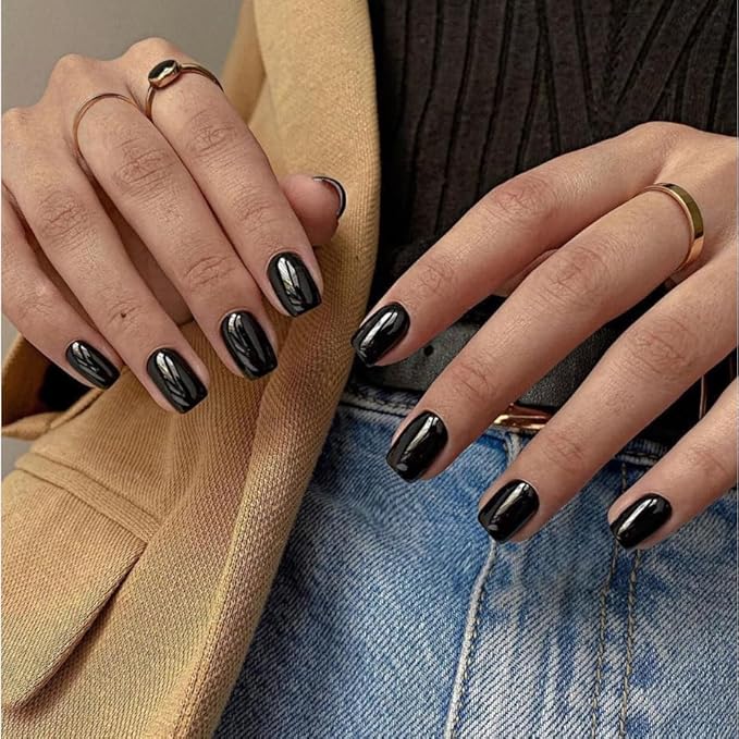 - Lasting Effect Black Nails Press ons:Unique formula ensures this cool black glue on nails short square long last and water-proof.If you prep your nails properly,these short coffin nails glue on could easily stay on for 9+ weeks