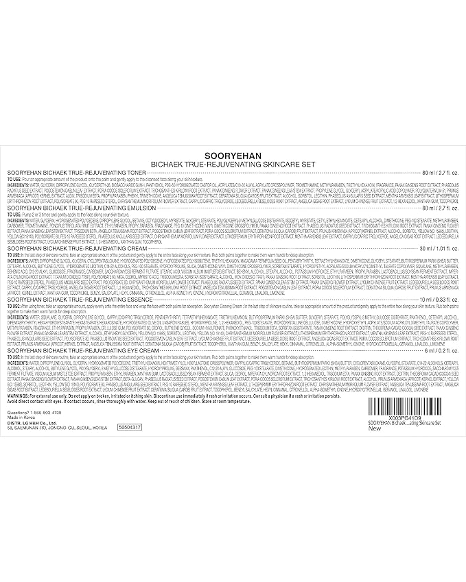 Sooryehan Bichaek True-Rejuvenating Skincare gift Set (206 ml/6.97 fl oz) - Radiant and Firm Skin, Skin Elasticity by LG Beauty. Korean Panax Ginseng, Korean Medicine Extracts