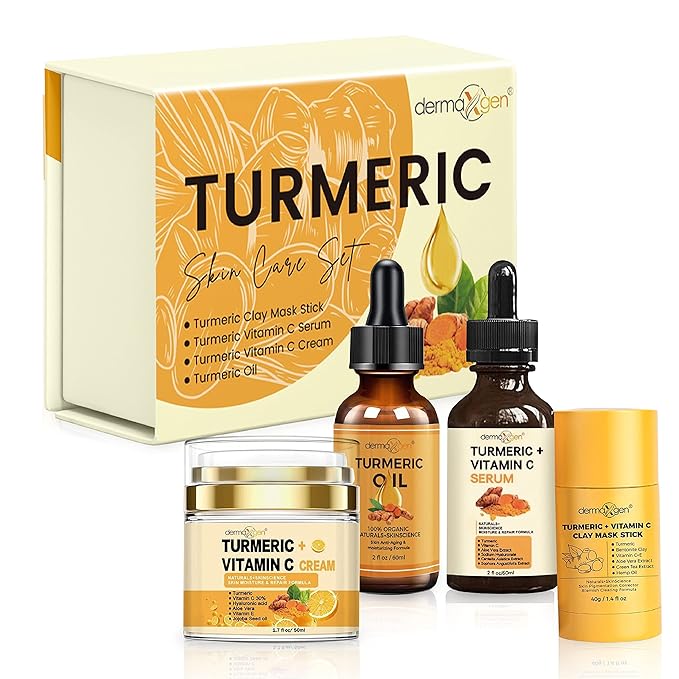- SKINSCIENCE: Turmeric can help you improve skin texture and glow, also slowing down the effects of aging on the skin, & the skin's elasticity. Turmeric and Vitamin C potent anti-aging properties increase the skin's ability to produce elastin, which gives your skin structure and keeps it rejuvenated and nourishes. It fights signs of aging like dark circles, dry or textured skin, dullness, and even tone. It boosts collagen production.