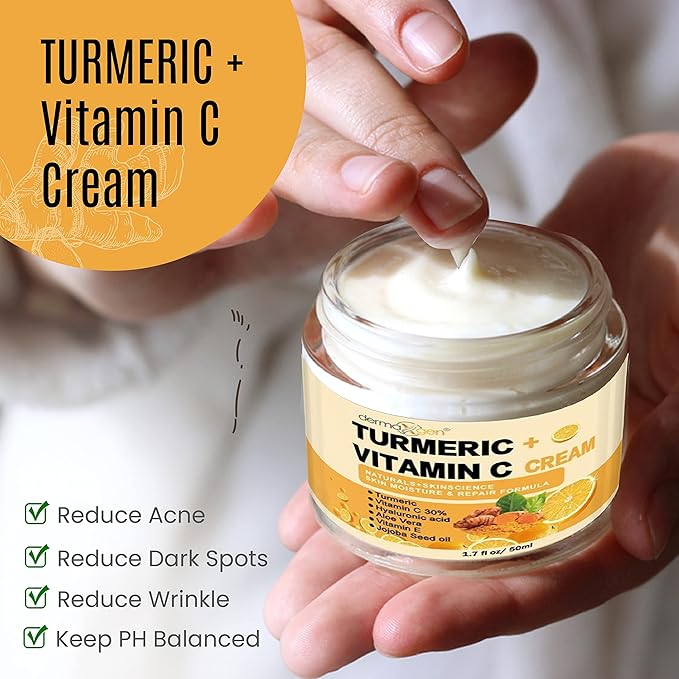 - BLEND OF TURMERIC + VITAMIN C: Our blend of natural ingredients infused with a combination of vitamin C and turmeric that minimizes expression lines and wrinkles, age spots, sagging skin, and collagen loss and controls premature aging process. With daily use of turmeric serum gives radiant glow to your skin. You will notice deeply hydrated and moisturized skin in 2 weeks. A youthful complexion by restoring moisture balance to reveal younger, supple skin.