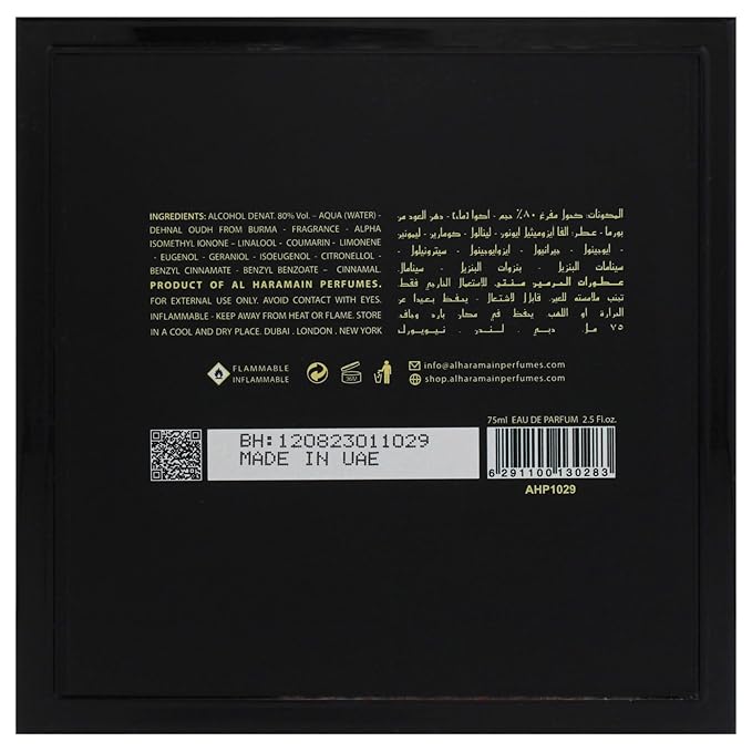 Al Haramain Oudh Burma Eau De Parfum Spray for Unisex - Arabian Perfume for Women & Men - Long Lasting Fragrance - Arabic Cologne - 2.5 oz EDP Spray
