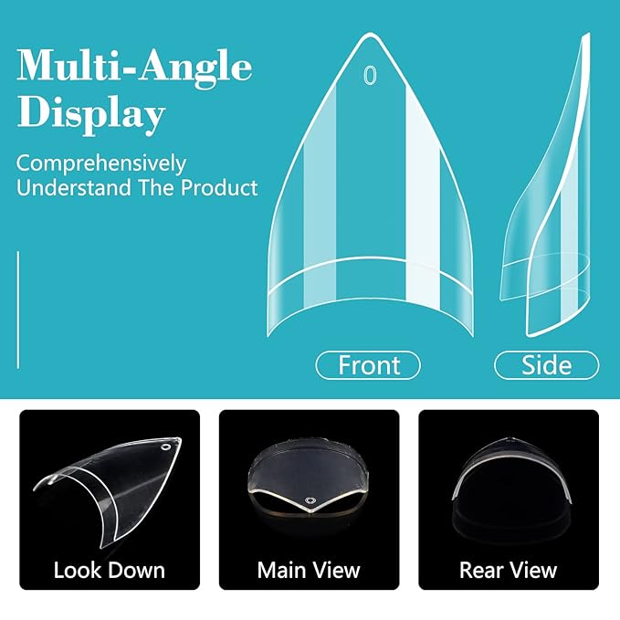 - 【Easy to Operate】The stiletto fake tips short show a great clear cover. The pointed false nails does not require additional trimming and filing. Just apply a layer of glue on the top of the nail tip, press it on the finger to fix it, and then polish the surface of the nail. Applying nail polish can quickly complete the production of nails.