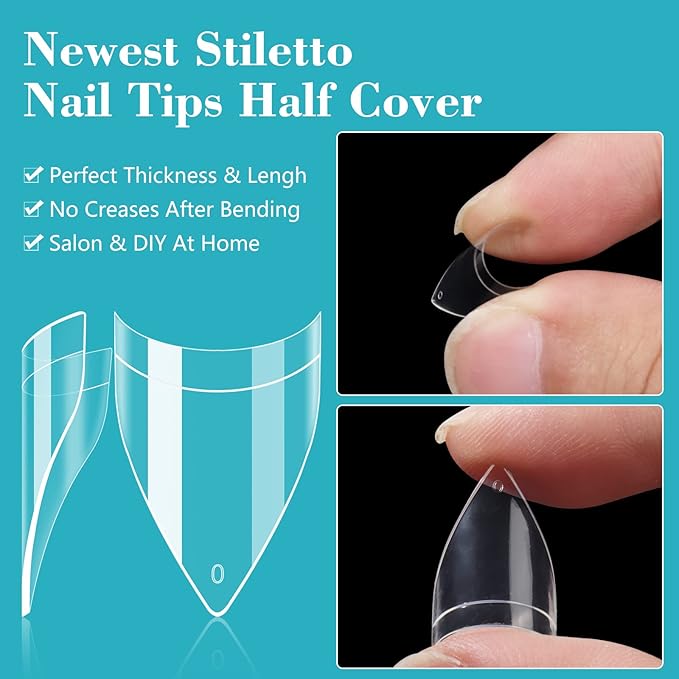 - 【Pointed Shape】Short stiletto nail tips is a half cover sharp nail design, which can perfectly help people with short nails and fragile nails. It can perfectly fit your nails and achieve the effect of blending with real nails, full of realism. The pointed shape makes your nails look more beautiful, which is very suitable for daily use.
