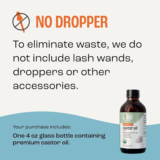 - 4 oz ORGANIC CASTOR OIL IN A GLASS BOTTLE WITHOUT A DROPPER - J MAC BOTANICALS Castor Oil is cold pressed, certified organic, and hexane free. Pure Organic Castor Oil with nothing else.