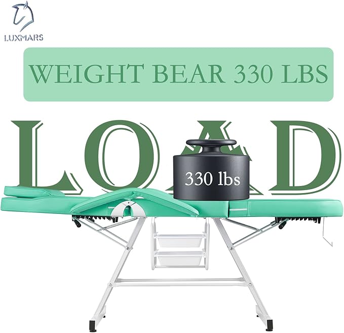 - 【Solid Construction】 Facial bed have a double rack and heavy-duty steel frame, which can bear weight up to 330lbs. The supporting design on the bottom makes the table more stable and strong, which could ensure years of reliable use. The anti-slip foot pads ensure its stability and friction force that prevents the tattoo tables from wobbly or slipping.