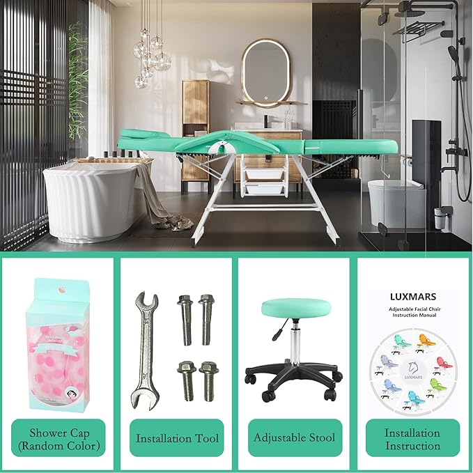 - 【Multi-Purpose】 This 3-section design portable massage spa bed works as a full-body massage bed, facial chair, or even as a tattoo chair that can recline to various positions as needed. Suitable for professionals in the salon, spa, or massage centers such as massage, facials, tattoos, eyelash extensions, eyebrow waxing or threading, microblading, beauty, and other salon needs.