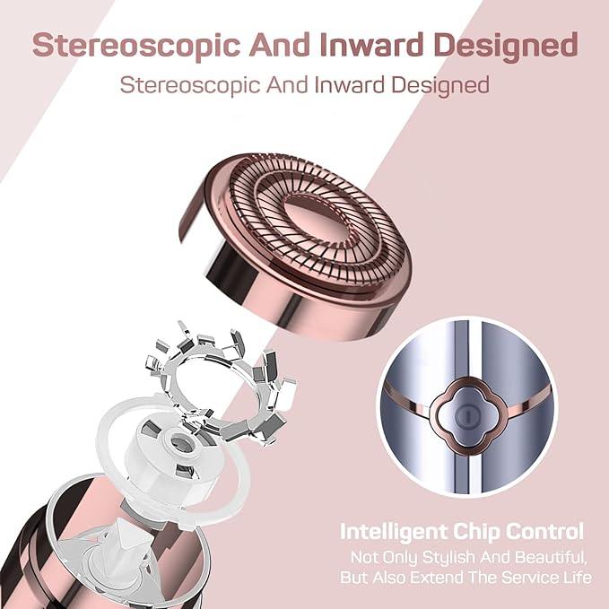 - 【2024 UPGRADES & INNOVATIVE TECHNOLOGY】The upgraded chip smart control button makes the hair remover for women more intimate to use and lasts longer. This face hair removal utilizes revolutionary Butterfly Technology that removes hair by microscopically paring it down by a spinning head covered by a plate. Horizontal cutting head with twin rotating blades expands the face razor's contact area.