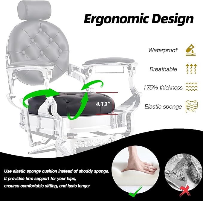 - Comfort and Luxury: This vintage barber chair boasts a spacious 20 "diameter and 4.13" thickened seat, making it more relaxing and enjoyable for your customers to use. Cushions are breathable and easy to clean.