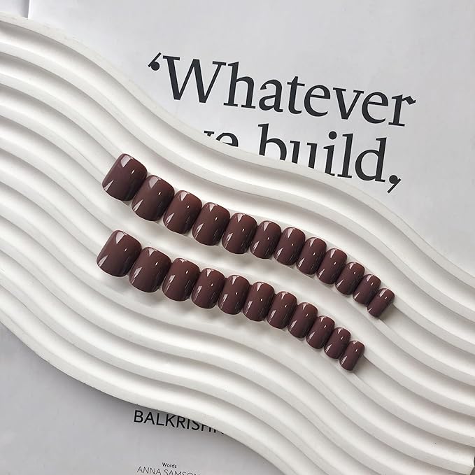 - Lasting Effect Brown Nails Press ons:Unique formula ensures this brown glue on nails short square long last and water-proof.If you prep your nails properly,these short coffin nails glue on could easily stay on for 5+ weeks