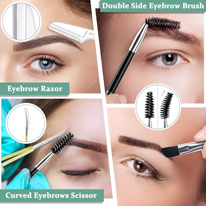 - TsMADDTs Tweezers Set: The 7pcs tweezer set come with 4pcs eyebrows tweezers(Pointed, flat, slant&angled tweezers), 1pcs curved eyebrows scissor, 1pcs double side eyebrow brush and 1pcs eyebrow razor. Lightweight and portable, our tweezers set makes for a thoughtful choice for any occasion