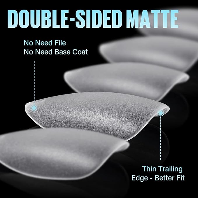 - 【Pre Buffed Nail Tips】The upgraded pre-buffed nail tips give you the privilege of "no file, no base coat". Protect your nail beds while saving time. Double-sided matte acrylic nails have stronger adhesion and can be pasted more firmly.