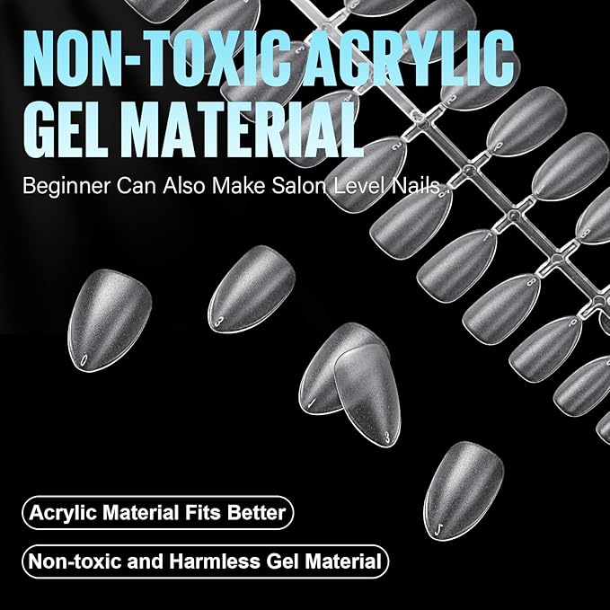 TOMICCA Short Almond Nail Tips, Acrylic Soft Full Coverage Fake Nailsfor Extension Manicure, Double-sided Matte Press on Nail Tips for Home DIY Art Women Girls