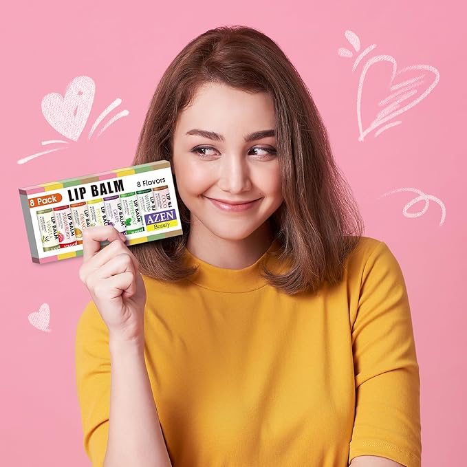 AZEN 8 Pack Lip Balm Stocking, Natural Lip Balm Bulk, Moisturizing Lip Balm for Dry Lips