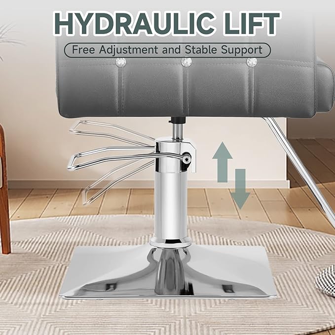 - MORE SUPPORT AND STABILITY: Our barber chair for home have sturdy square chrome steel base with electroplate iron footrest, which provide strong loading. A great improvement in stability or supporting force. The hydraulic barber chair maximum bearing capacity 330Lbs, suitable for most women and men.