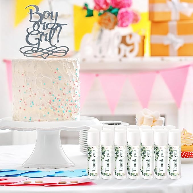 - Sweet Gift Choice: these lip balms printed with the words "Thank You for celebrating with us" and green eucalyptus leaves, suitable as wedding favors, baby shower gifts, gender reveal party gifts, etc, and surprise and delight your guests with this thoughtful gift