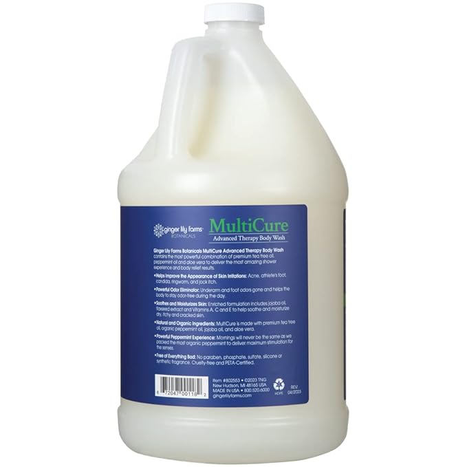 Ginger Lily Farms Botanicals MultiCure Advanced Therapy Body Wash with Tea Tree Oil, Peppermint and Aloe Vera, 100% Vegan & Cruelty-Free, 1 Gallon (128 fl oz) Refill