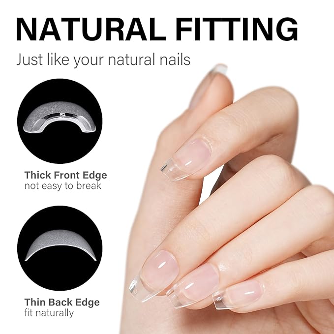 - “PROTECTOR” FOR NAILS: Are you worried that your nails are too short, too soft, easy to crack or irregular in shape? Choose AILLSA full cover nail tips, which are made of high-quality gel material, with strong toughness and malleability, not easy to break. The false nail tips feature “Thin back edge, thick front edge”. The thinner back edge can make it fit your nails better. The thickened front edge makes it not easy to break or bend. Just like your natural nails, do whatever you want