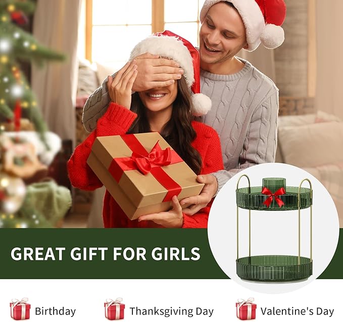 - 【Multi-functional Use】: The rotating storage box is suitable for vanity organization, perfume organizer, skincare organizer, bathroom organizer, nail polish organizer, etc. It can be placed on vanities, bedrooms, bathrooms, wardrobe cabinets, or countertops, and more.