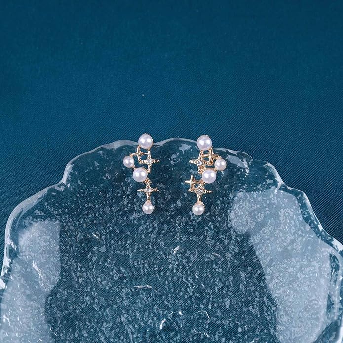 Vintage Pearl Star Earrings Rhinestone Pearl Drop Earrings Gold Crystal North Star Earrings Cz Northstar Studs Earrings Jewelry for Women