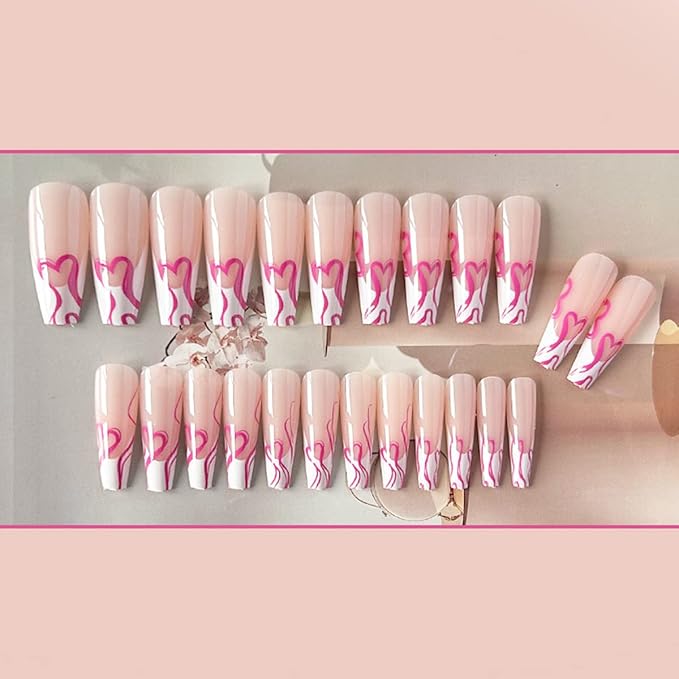 - Fashionable Design: According to the most popular elements of the moment, these glossy coffin press on nails are designed with pink heart french tip, perfect for adding a touch of nature-inspired elegance to your style. The nails are square in shape and medium long, providing a comfortable and chic look.