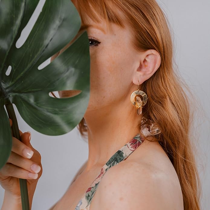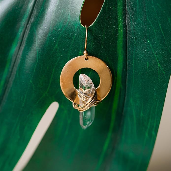 - CLEAR QUARTZ EARRINGS: Amplify your intentions with Clear Quartz earrings. Known as a master healer, it works with all chakras and is especially beneficial for Aries & Leo, symbolizing clarity and energy.