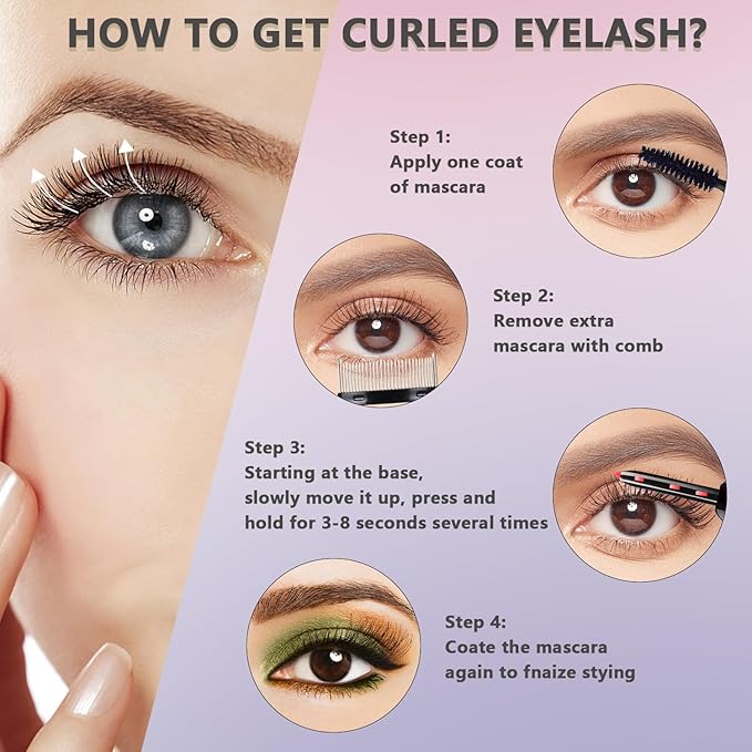 - Quick Natural Curling - The heated eyelash curler can fast heat up within 10s, creating a perfect natural curling eye makeup quickly without crimping or pinching. Lasting for 24 hours