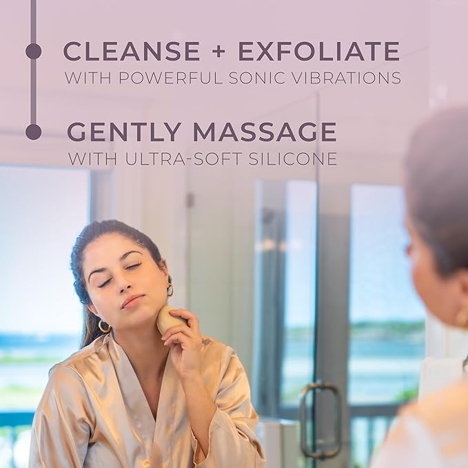 - SPA-LIKE LUXURY AT YOUR FINGERTIPS - Treat yourself to the pure bliss of our waterproof silicone face massager. Made with food-grade silicone, its sanitary properties ensure a clean and hygienic cleanse, while the sonic vibrations gently massage your skin, revealing a firm, toned, and beautiful complexion.
