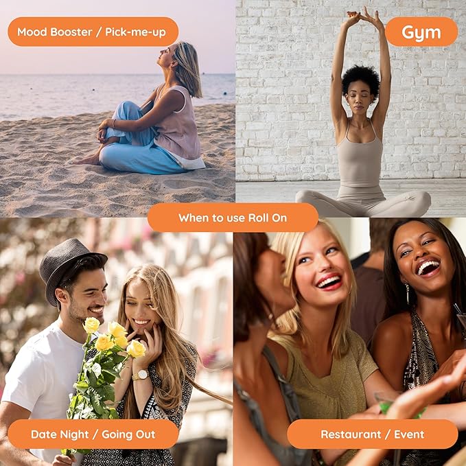 - ON-THE-GO CONVENIENCE - Our roll-ons are thoughtfully crafted with a travel-friendly size, making them perfect companions for your daily adventures. Slip one into your bag or pocket and effortlessly elevate your mood anytime, anywhere. The sleek and compact design ensures mess-free application, while the rollerball glides smoothly over your skin, delivering the perfect amount of scent with each stroke.