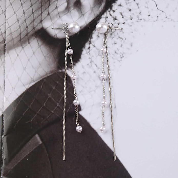 - Silver long pearl earrings.Gift Object:A Unique and Stunning Jewellery,Give it to a Perfect Gifts For a Best Friend or any Beloved Ones.You Will Receive Many Compliments!