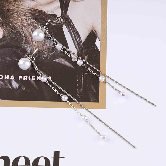 - Long pearl chain earrings.Item design:Diversify Collocation.Used to Groom Your the Ear for a More Layered Look , It is Wonderful Everyday Jewelry,This Earrings Pins is Very Trendy Designed in a Minimalist Style.