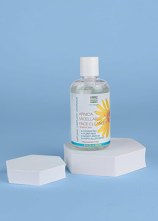 Arnica Montana Micellar Cleansing Water, Facial Cleanser & Makeup Remover, Suitable for All Skin Types, Use for Natural Lymphatic Drainage, Reduces Face Puffiness, Daily Skin Care, 8 Fl Oz