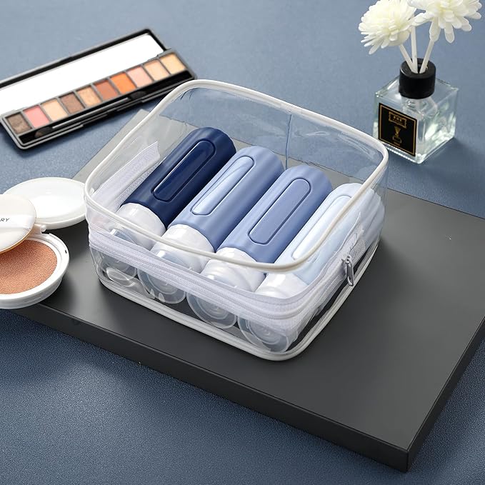 - Useful Travel Accessories: This is a nice assortment of travel containers in a useful zip case. ( Come in 4 Travel Bottles+4 Travel Jars+2 Spray Bottles+2 Scoopers+1 Funnel+1 Clean Brush + 1 Page Label + 1 Clear Toiletry Bag ) Multiple ones allow you take along different beauty products and toiletries according to your requirement