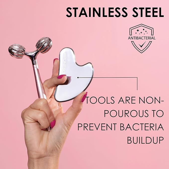 - IMPROVES SKIN: Daily skin contouring & facial massage increase blood flow to the face and neck creating a more radiant appearance. Made with stainless steel, both tools can be chilled in the freezer for a cold therapy experience.