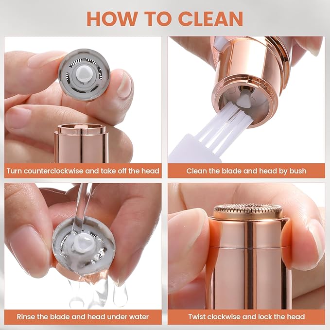 - Safe on all skin types and tones- The facial hair remover has horizontal cutting head with advanced double-deck blade expands the contact area for instant and thorough trimming of unwanted hair on fingers, cheeks, chin, upper lip and arms. Quick hair remover in a few second.