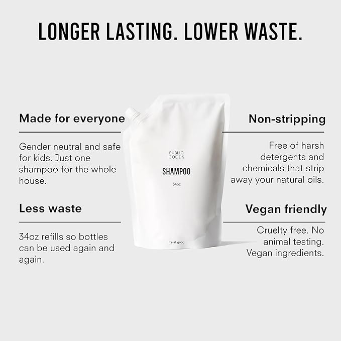 Public Goods Shampoo for Women & Men | Natural Gentle Shampoo to Cleanse & Nourish All Hair Types | Made with Organic Essential Oils | Sulfate & Paraben Free | Vegan | Made in Canada | 34 Fl Oz Refill