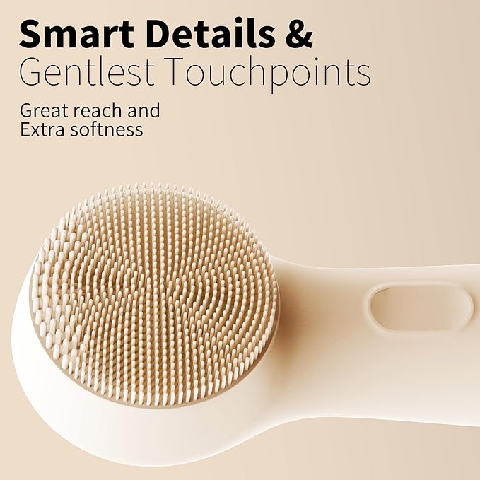 - FEATURES/BENEFITS: This electric face scrubber is small-sized, waterproof, rechargeable, and ultra gentle. You can travel with it, and enjoy it in the shower or bathtub. It features velvety soft silicone and V-Sonic tech that does not disrupt the skin barrier, therefore it is safe to even use twice daily.