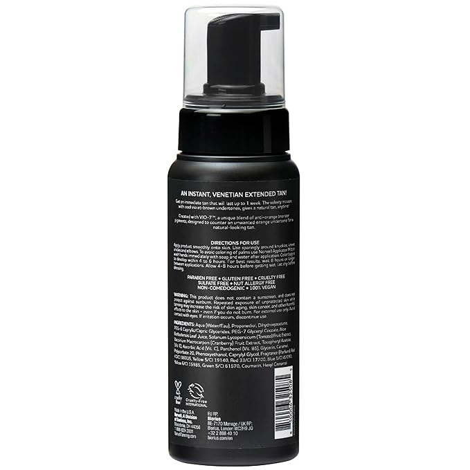 - SEAMLESS TAN PERFECTION: Take your tan to the next level with the unique combination of violet and brown tone bronzers in this sunless tanner. Achieve a deeper, darker tan that looks incredibly natural, without any hint of that dreaded orange color, using our VIO-7 technology.