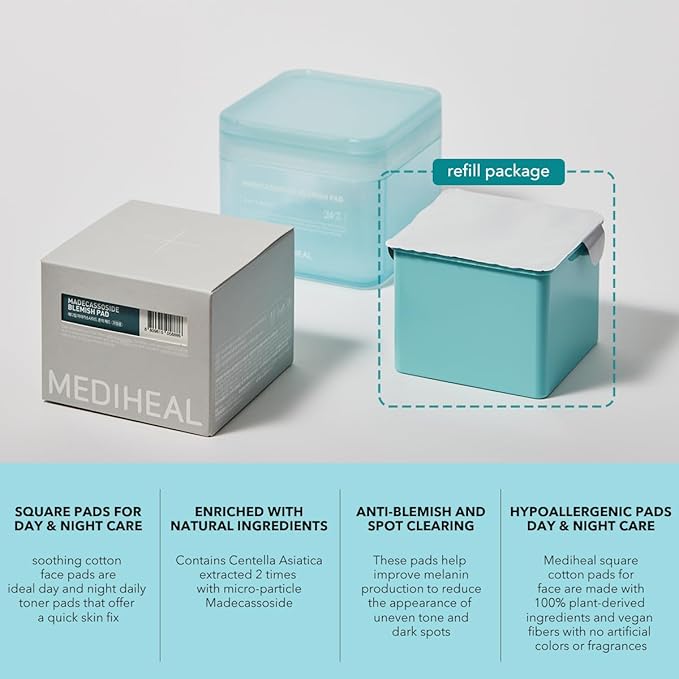 (Only Refill) Mediheal Madecassoside Blemish Pad (100 ) - Cotton Facial Toner Pads for Anti Blemish to Improved Uneven Skin Tone - Vegan Gauze