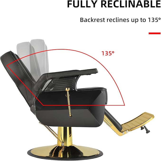 - 【Adjust Freely】 The seat height can be adjusted from 43 inches to 48 inches for additional convenience. It can be reclined from 90° to 135° for greater functionality and comfort. Adjust the attached headrest to accommodate a variety of heights and the reclining salon chair are ergonomically designed, bring maximum comfort to your guests.
